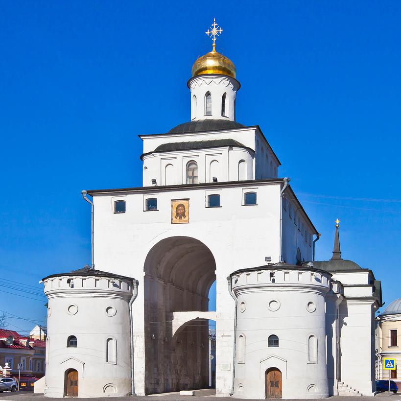 La Porte dorée – Золоты́е воро́та- fut construite de 1158 à 1164 à la demande du prince André Ier Bogolioubski. La fin de sa construction est marquée par la consécration de la chapelle en pierres blanches qui la surmonte et la domine, dédiée à Notre-Dame.